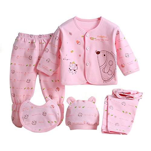 PER 新生児服 ベビー服 ベビー肌着 下着 5枚組 出産祝い プレゼント (ピンク)