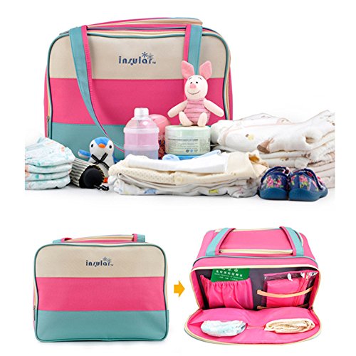 PER ママバッグ マザーズ用 おむつバッグ 大容量 多機能 ファッション 旅行 肩掛け (ローズ)