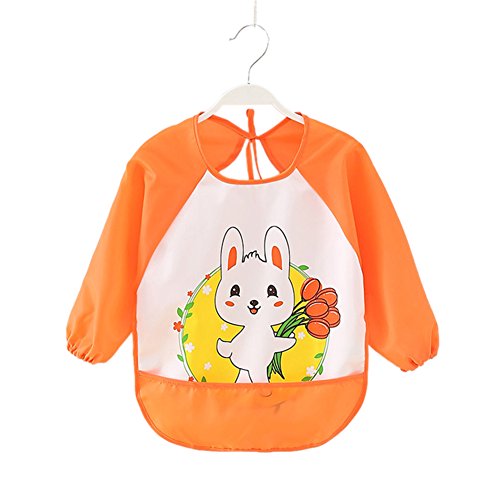 ベビー用 ビブ エプロン 赤ちゃん 子供用 防水 食事 絵書き 長袖 軽い カートン 動物柄 1-3歳 (色7)