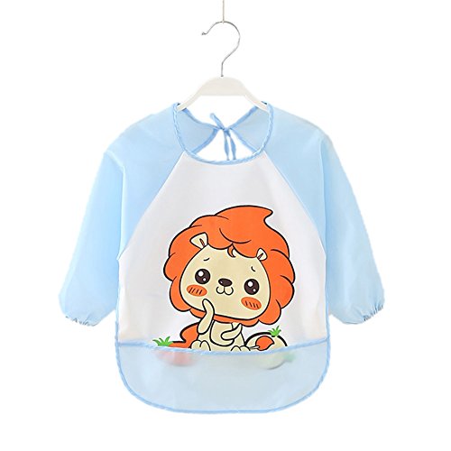 ベビー用 ビブ エプロン 赤ちゃん 子供用 防水 食事 絵書き 長袖 軽い カートン 動物柄 1-3歳 (色10)