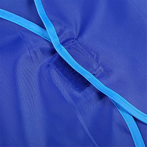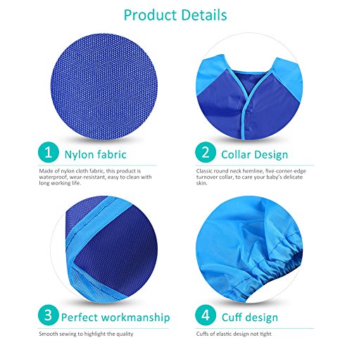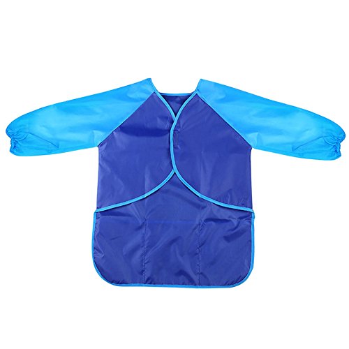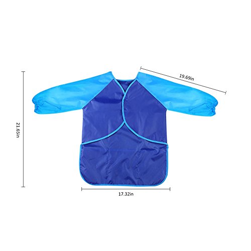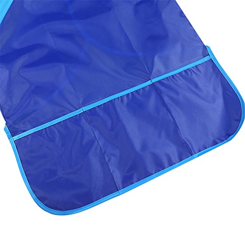 ベビー エプロン 長袖 食事用 お絵かき用 粘土遊び用 防水 脱着簡単 ポケット付き 女の子 男の子 (ブルー)