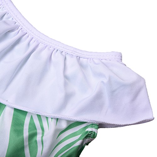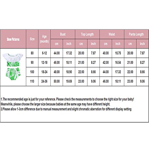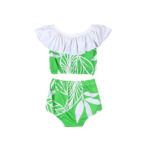 PER ベビー 水着 キッズ 女の子 水泳 葉プリント 2点セット 可愛い レース付き (80cm)