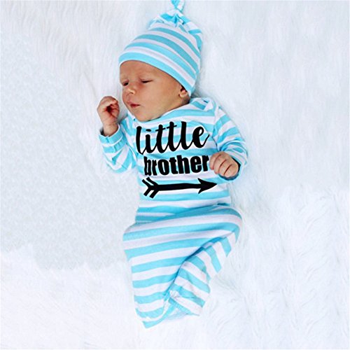 赤ちゃん服 カバオール パジャマ ベビー服 新生児 寝袋 ボディースーツ 綿 ストライプ 女の子 男の子 出産祝い 可愛い 2点セット (ブルー)