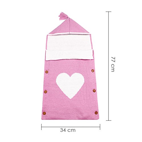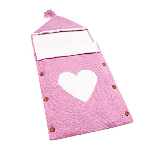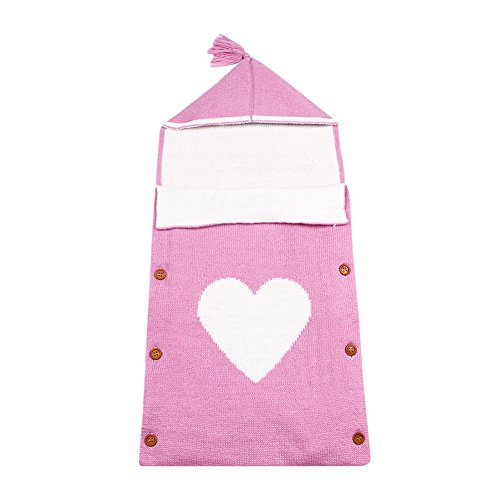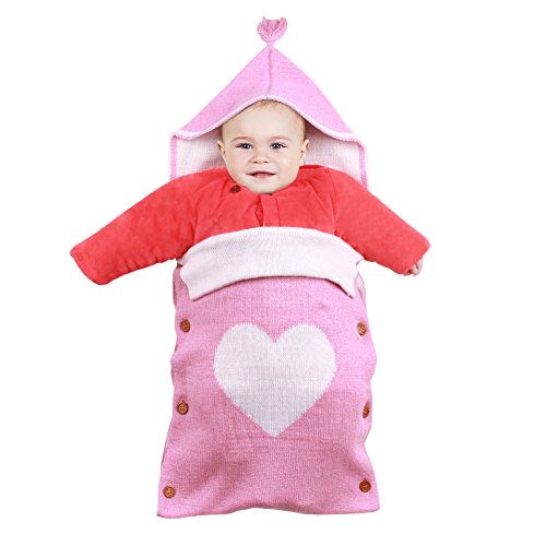 ベビー おくるみ 新生児 寝袋 フード付き ブランケット 赤ちゃん タオルケット ハートプリント 可愛い ソフト 通気性 (ピンク)