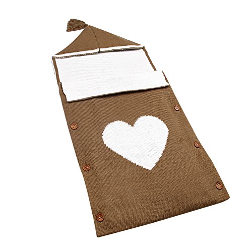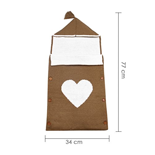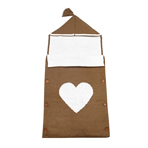 ベビー おくるみ 新生児 寝袋 フード付き ブランケット 赤ちゃん タオルケット ハートプリント 可愛い ソフト 通気性 (カーキ)