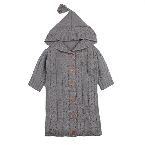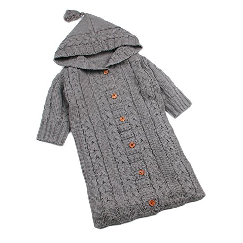 ベビー おくるみ 赤ちゃん シュラフ ブランケット タオルケット 寝袋 フード付き 快適 柔らかい (グレー)