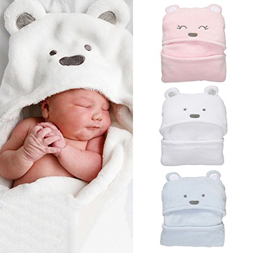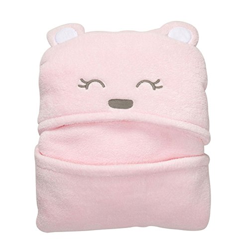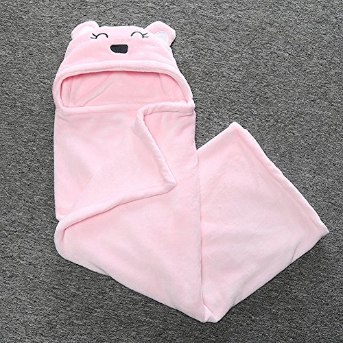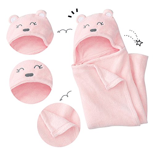 ベビーおくるみ 赤ちゃん用 タオルケット バスローブ 冷房 対策 フード付き 可愛い クマ 柔らかい 出産祝い (ピンク)