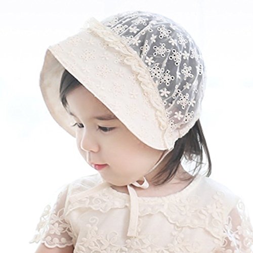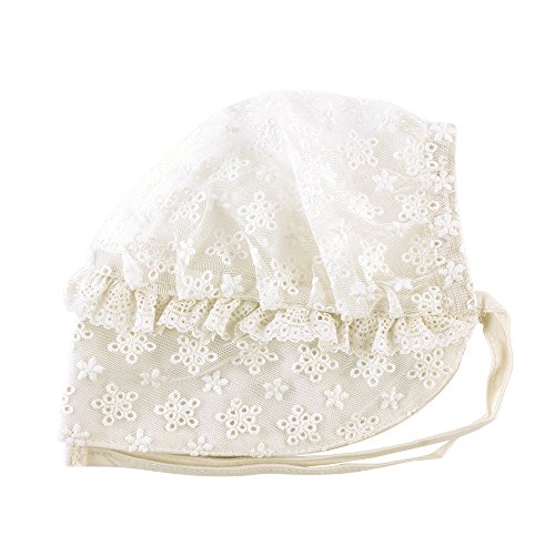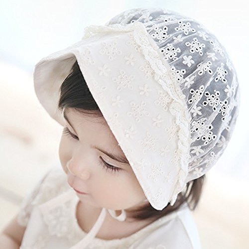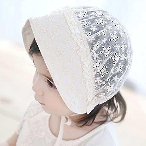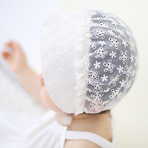 PER ベビー帽子 新生児用 キャップ レース ハット コットン 調節可能 通気性良好 お出かけ UVカット ホワイト