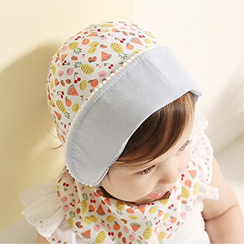 PER ベビー帽子 新生児用 キャップ フルーツパターンとレース付き コットン 調節可能 両側面使用可能 通気性良好 グレー/オレンジ