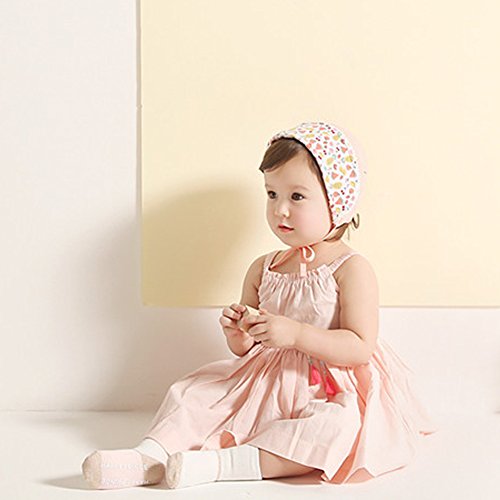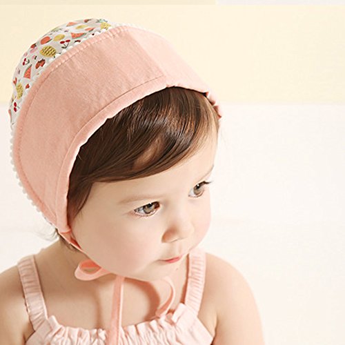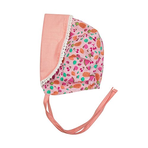 PER ベビー帽子 新生児用 キャップ フルーツパターンとレース付き コットン 調節可能 両側面使用可能 通気性良好 グレー/オレンジ