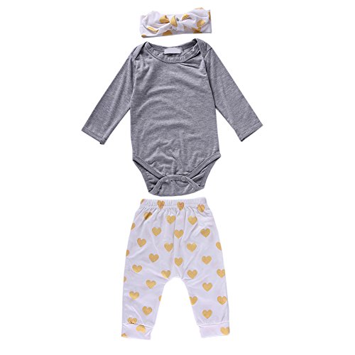 PER ベビー カバーオール ロンパース パンツ 3点セット ヘッドバンド ズボン ボタン付き 長袖 女の子 可愛い(0-24ヶ月)