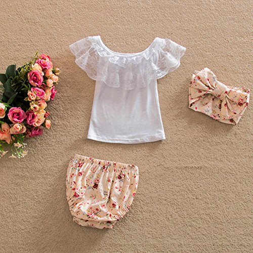 PER ベビー服 ベビー 上下セット ベスト キッズ ベスト&パンツ&ヘッドバンド 袖なし 柔らかい レース 可愛い 女の子 (6~24ヶ月)