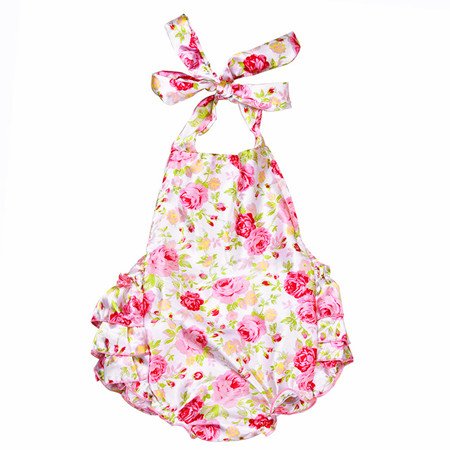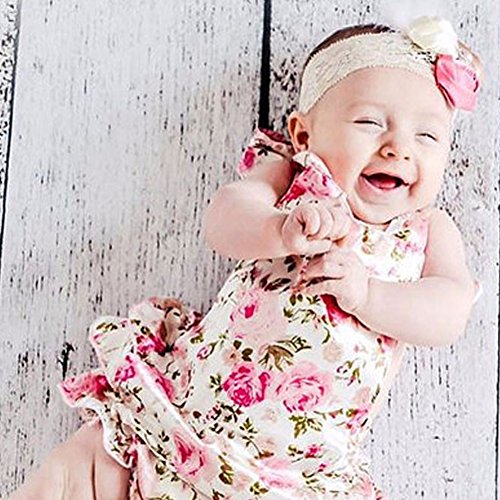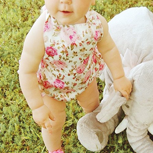 PER ベビーロンパース カバーオール 新生児 幼児 赤ちゃん 女の子 花柄 袖なし 可愛い 夏 (3~18ヶ月)