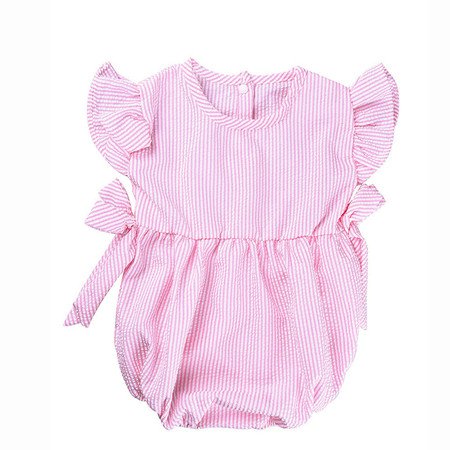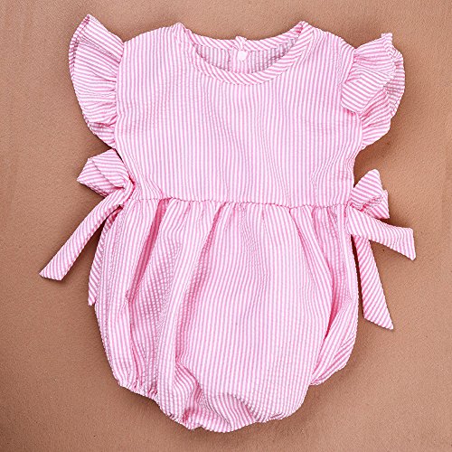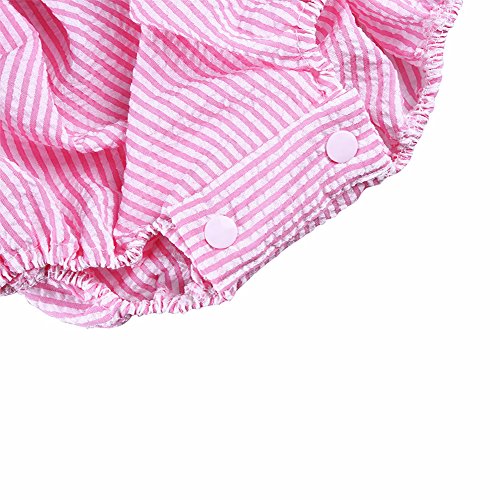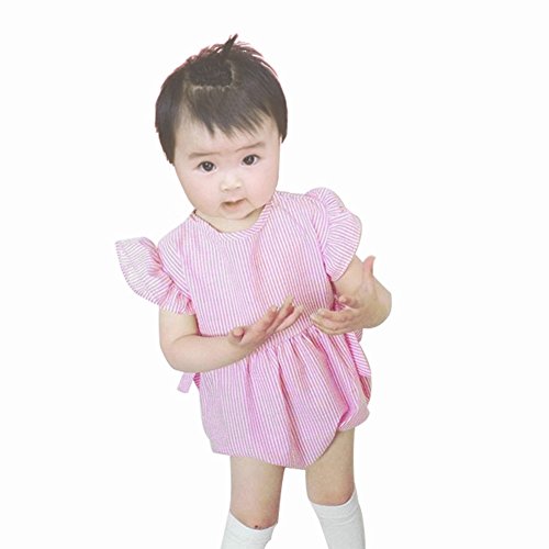 PER ベビーロンパース カバーオール 赤ちゃん 女の子 綿 フリル半袖 可愛い お着替え簡単 ピンク 春夏 (3~18ヶ月)