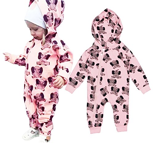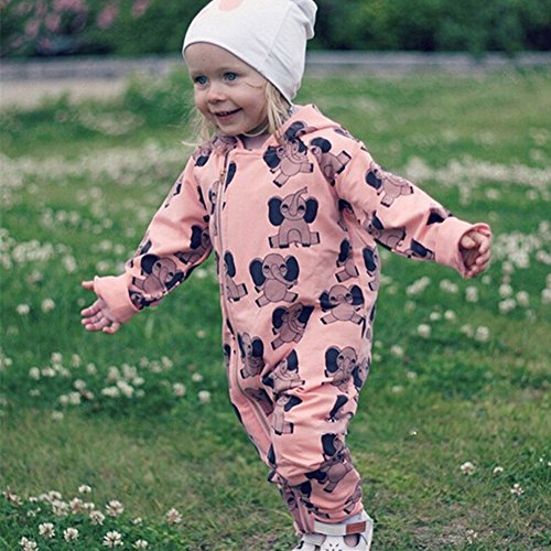 PER ベビー服 ロンパース カバーオール パジャマ 着ぐるみ 象柄 長袖 綿100% ジッパー付き お着替え簡単 可愛い 出産祝い