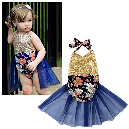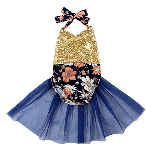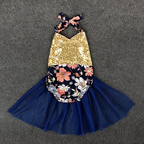 PER ベビー服 ホルターネック ロンパース カバーオール 花柄 可愛い 網糸スカート キラキラ 女の子 夏