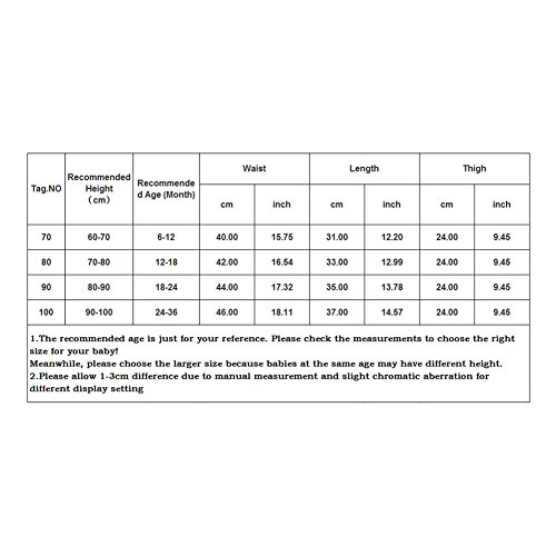 70:着丈31cm、ウエスト40cm、ワタリ幅24cm、年齢6~12ヶ月
