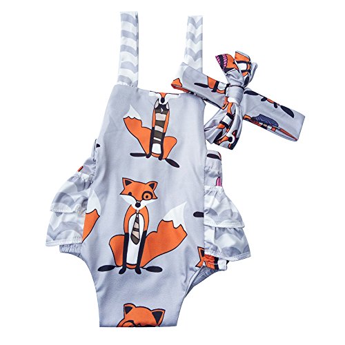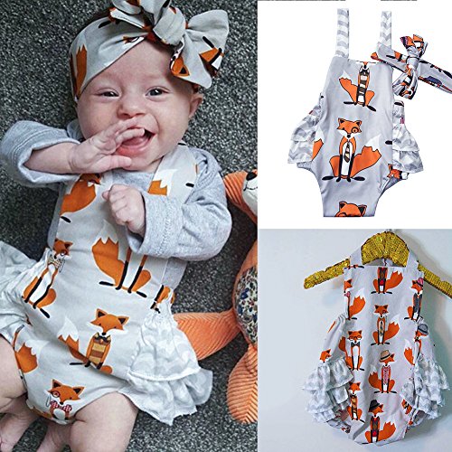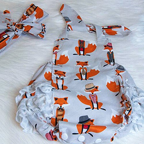 PER ベビー ロンパース カバーオール 連体服 スリング ロンパース+ヘッドバンド 可愛い フォックスプリント ベビー 幼児  夏装