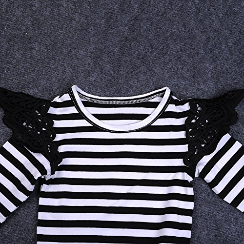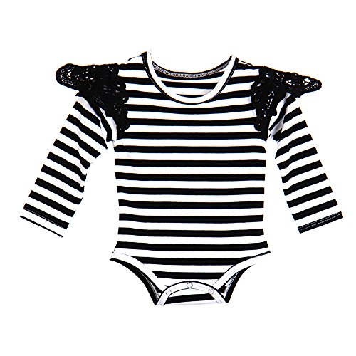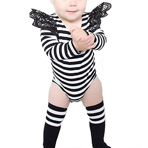 PER ロンパース ベビー カバーオール ベビー服 キッズ 長袖 ストライプ レース コットン 女の子 新生児