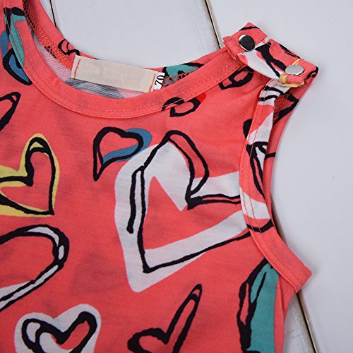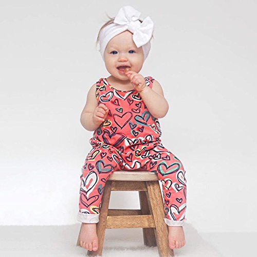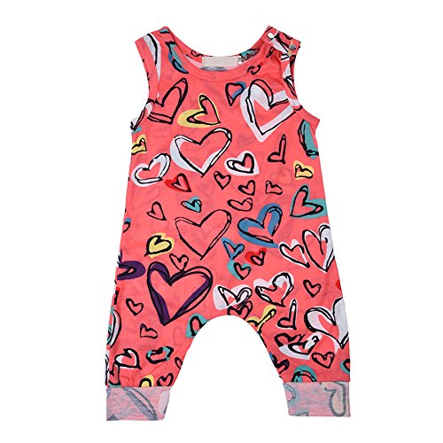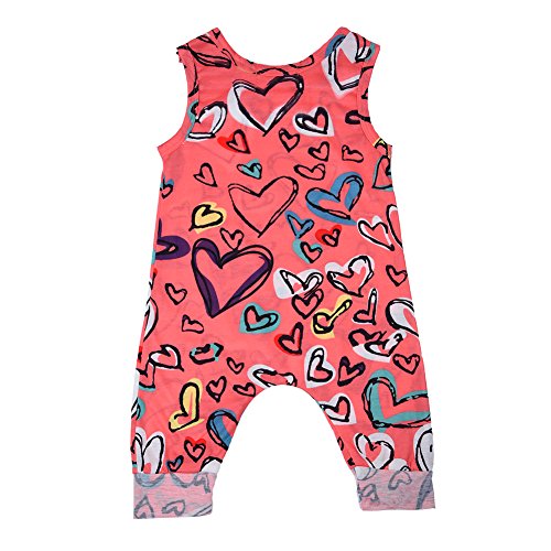 PER ベビー服 ロンパース ジャンプスーツ カバーオール 夏 ハート柄 袖無し オーバーオール 女の子 赤ちゃん (3~24ヶ月) (L)