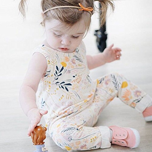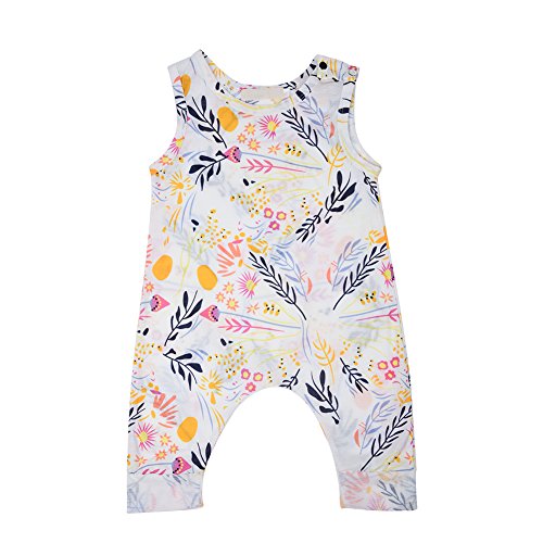 PER ベビー服 ロンパース ジャンプスーツ オーバーオール 袖なし 可愛い 花柄 女の子 幼児 コットン (XL)