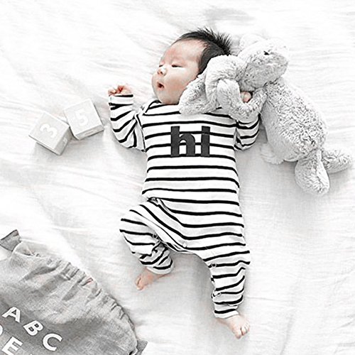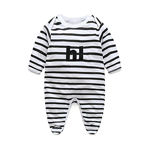 PER ベビー ロンパース カバーオール ベビー服 ストライプ 長袖 赤ちゃん 男の子 女の子(0-24ヶ月) (80)