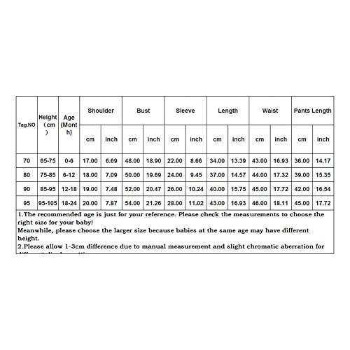 95:肩幅:20cm、着丈43cm、袖丈:28cm、バスト:54cm、ウエスト:56cm、パンツ長さ:45cm、年齢18~24ヶ月