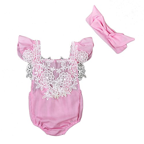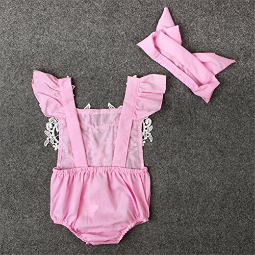 PER ベビー服 カバーオール ロンパース 夏装 子供服 ロンパース&ヘッドバンド 2点セットレース 花柄 ベビー 幼児 女の子 (100)