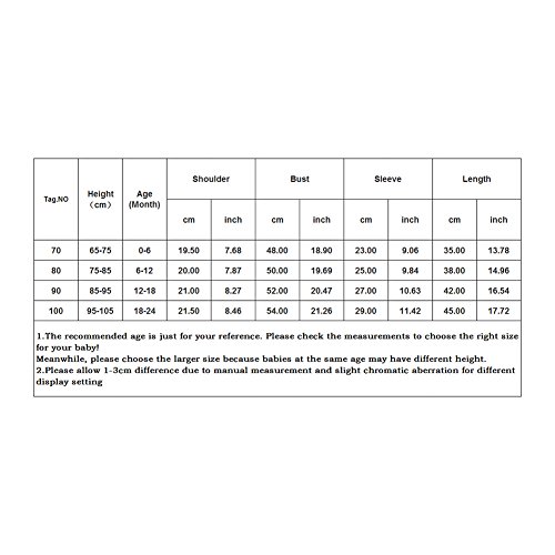 70cm:身長:65-75cm、肩幅:19.5cm、着丈:35cm、バスト:48cm、袖丈:23cm、年齢:0~6ヶ月