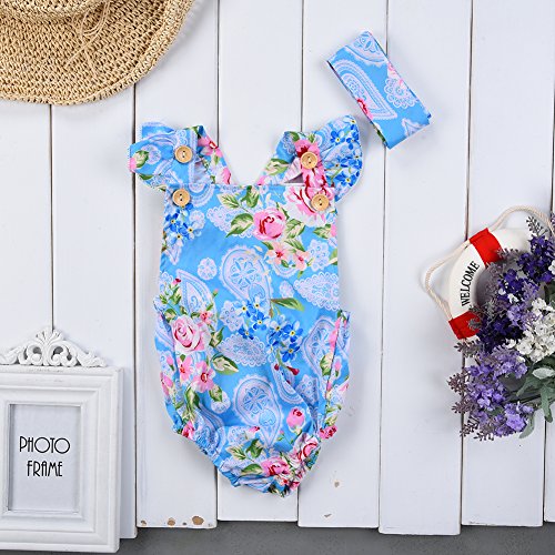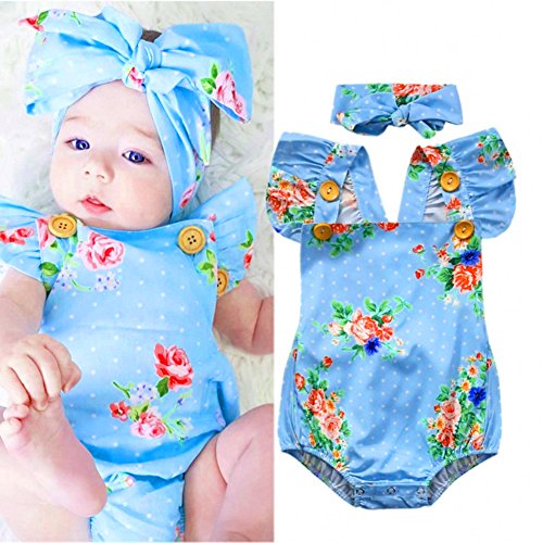 PER ベビー服 ロンパース カバーオール ロンパース& ヘッドバンド ベビー 女の子 ガールズ 花柄 可愛い 撮影用 (90cm)