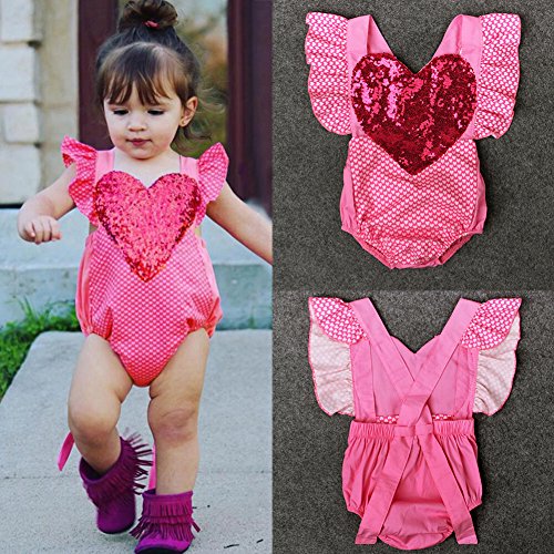 PER ベビー服 キッズ ロンパース カバーオール シークイン 可愛い 綿 女の子 ガールズ 夏用 (90)