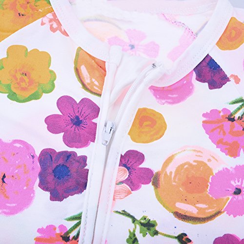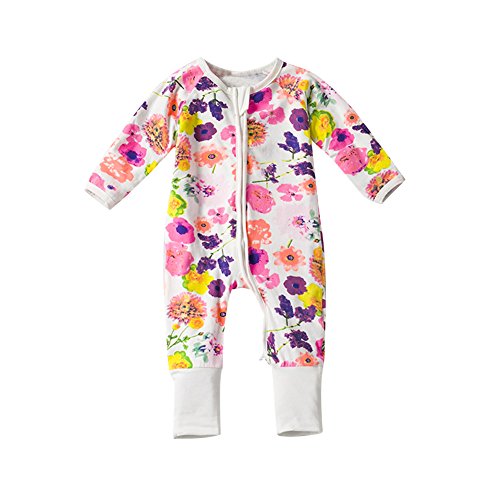 PER キッズ ベビー服 ロンパース カバオール 花柄 綿100% 長袖 前開き お着替え簡単 女の子 子供 可愛い (100)
