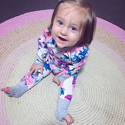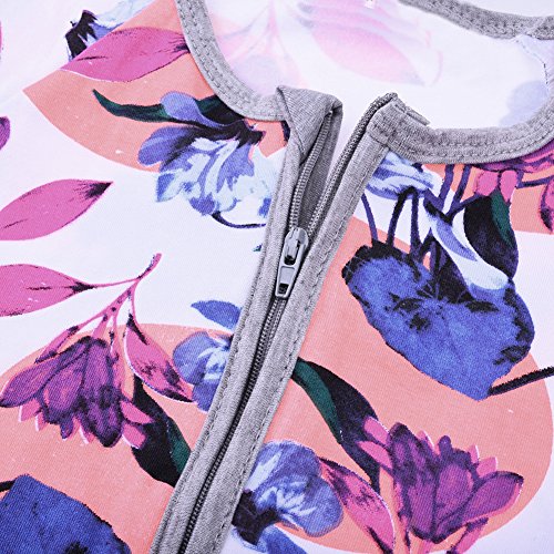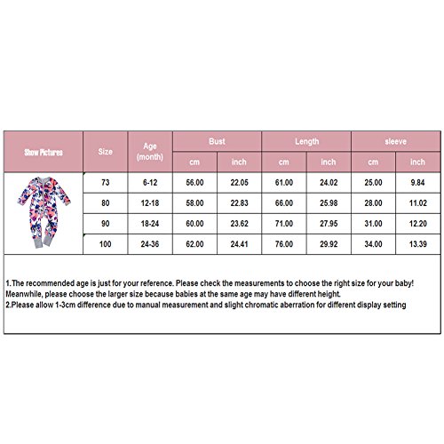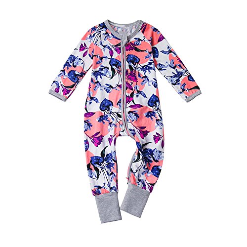 PER ベビー服 幼児 ロンパース カバーオール 綿 花柄 前開き 長袖 可愛い 柔らかい 快適 シッパー付き (90)