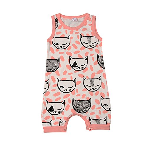 PER ベビー服 カバーオール ロンパース 猫 フェザー 可愛い 女の子 男の子 袖なし コットン
