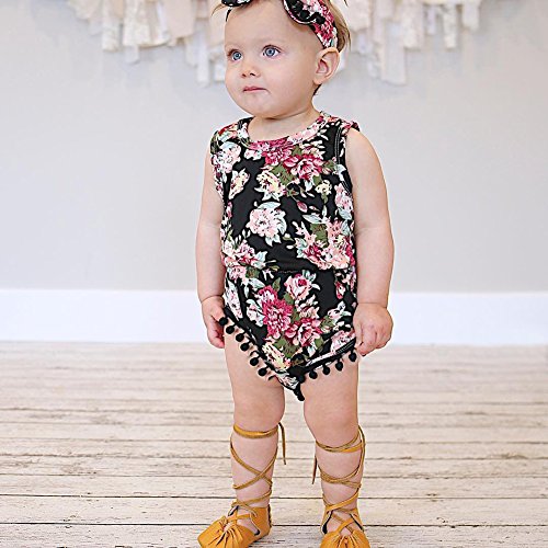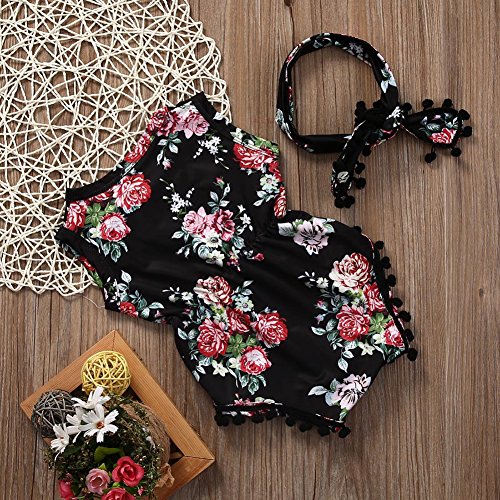 ベビー服 2点 セット カバーオール ヘッドバンド 花柄 袖なし 夏 可愛い 女の子 コットン 0-2歳 (80)