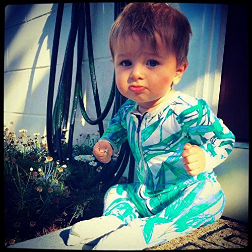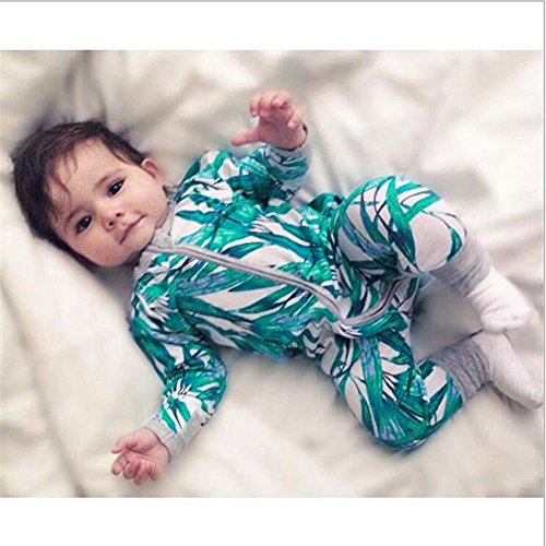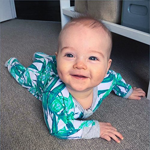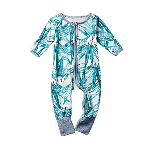 PER ベビー服 カバーオール ロンパース 長袖 幼児 男の子 女の子 竹プリント 前開き 綿 出産祝い (100)