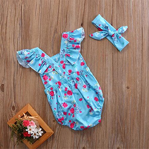 ベビー服 ロンパース カバーオール ヘッドバンド付き 蝶結び 二点セット 花プリント ガールズ (90)