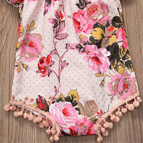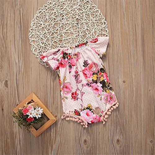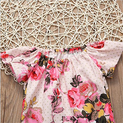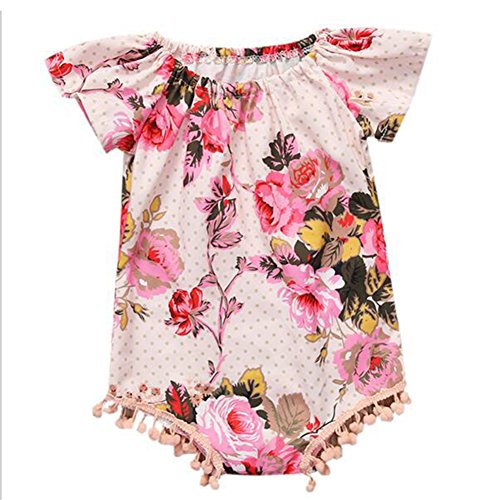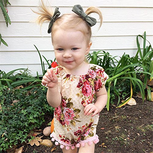 ベビー服 ガールズ ロンパース カバーオール 夏 花 半袖 綿 通気 出産祝い (80)
