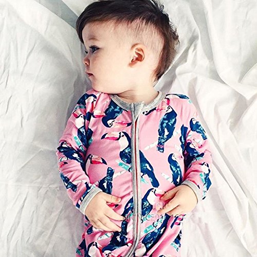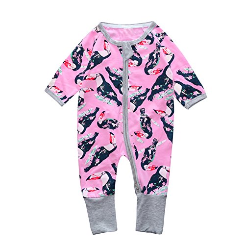PER ベビーロンパース カバーオール 長袖 コットン 幼児 可愛い 前開き ジッパー付き ガールズ 女の子 (100)