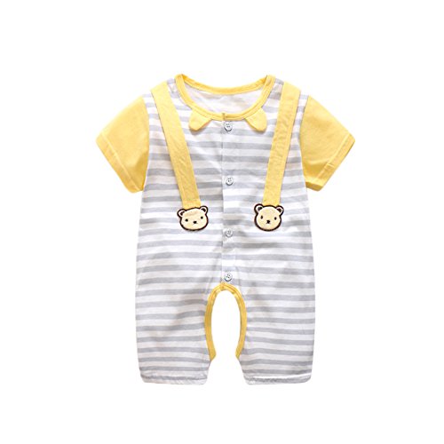 ベビー服 夏 女の子 男の子 キッズ カバーオール ロンパース 半袖 綿100% カジュアル 通気性 可愛い 1-4歳 (100, イエロー)