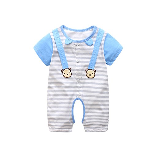ベビー服 夏 女の子 男の子 キッズ カバーオール ロンパース 半袖 綿100% カジュアル 通気性 可愛い 1-4歳 (100, ライトブルー)