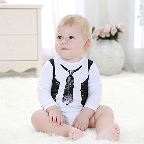 ベビー 服 新生児 赤ちゃん ロンパース 部屋着 肌着 ネクタイプリント ボーイズ ボタン付き 春夏 綿 通気性 (S)