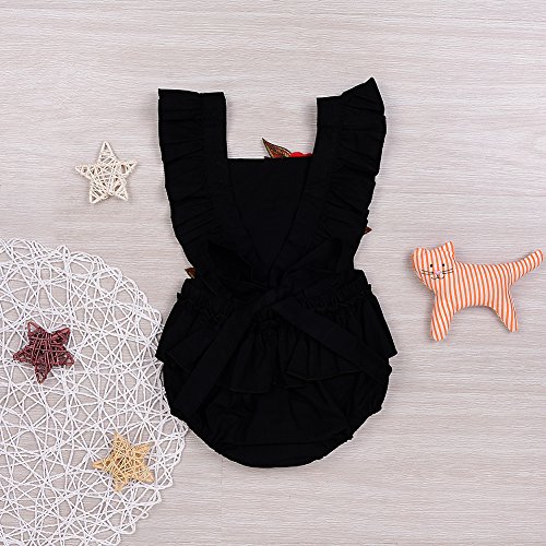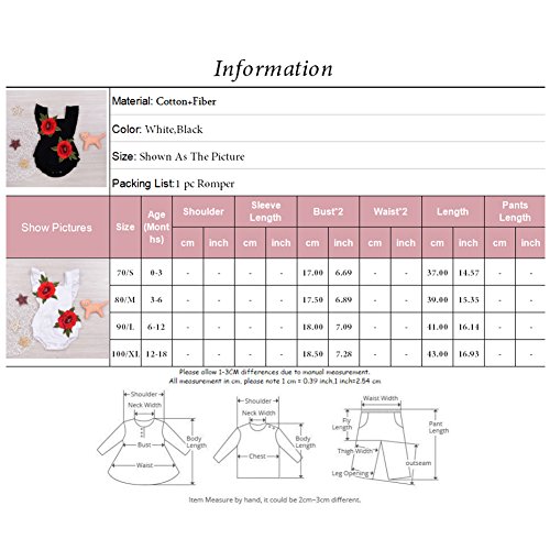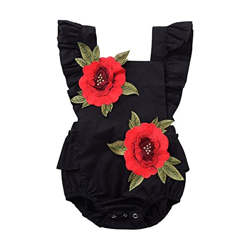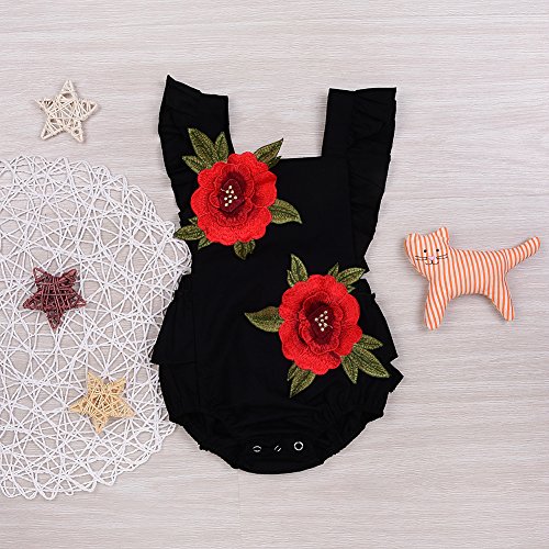 ベビー ロンパース カバーオール 夏 おしゃれ 可愛い 女の子 ガールズ 刺繍 花 夏 通気性 ソフト 黒 白 (XL, ブラック)