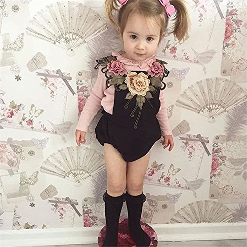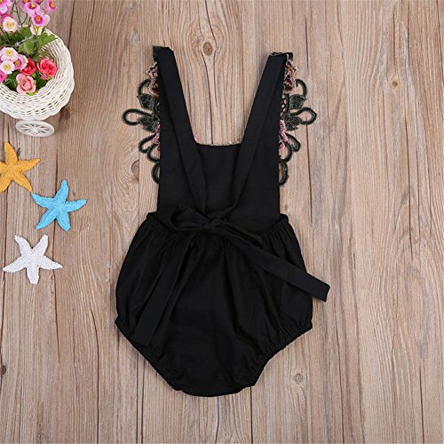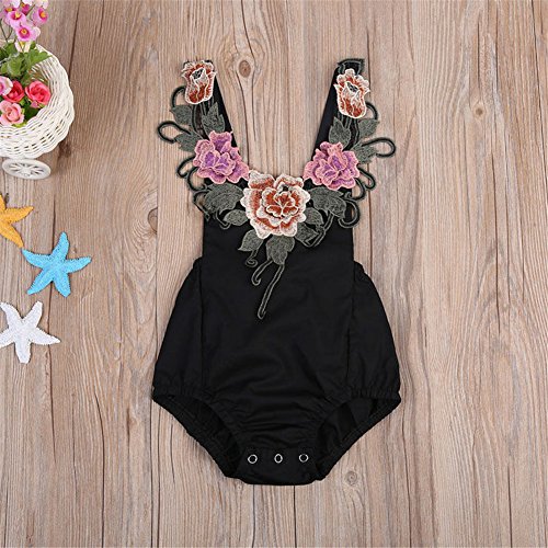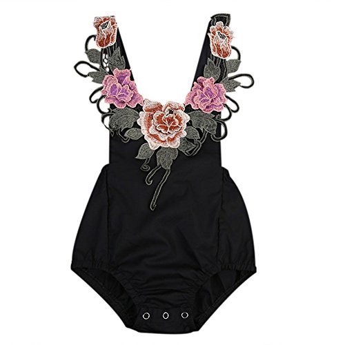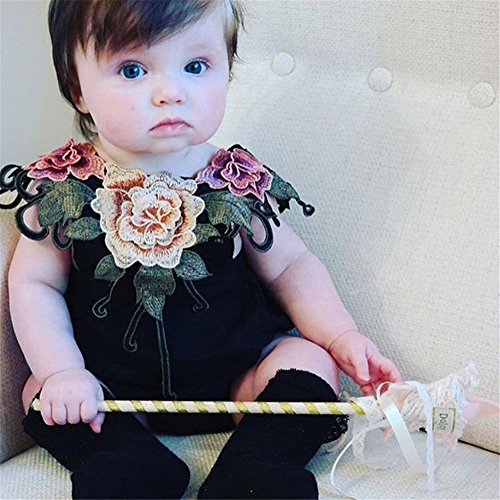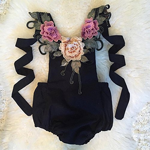 赤ちゃん服 ベビー服 カバーオール ロンパース 子供服 キッズ 女の子 華やか 刺繍 お洒落 夏 (L, ブラック)