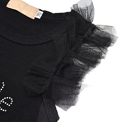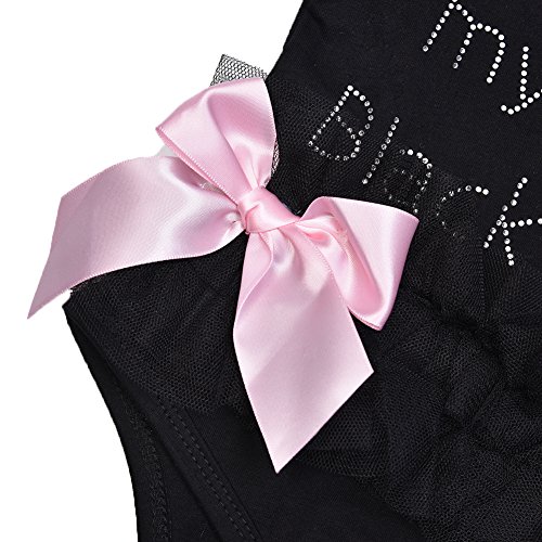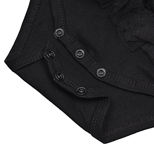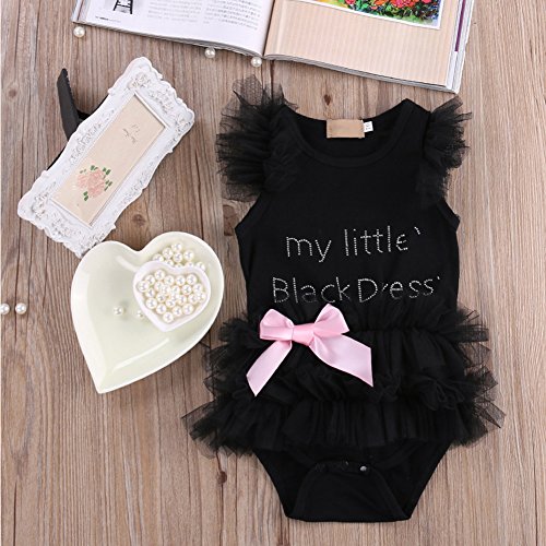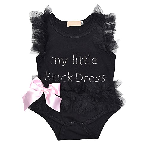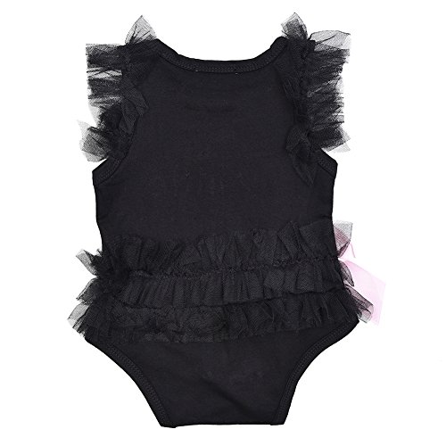 - 黒いベビーロンパースにはレース蝶結びの飾りがとっても可愛いです。