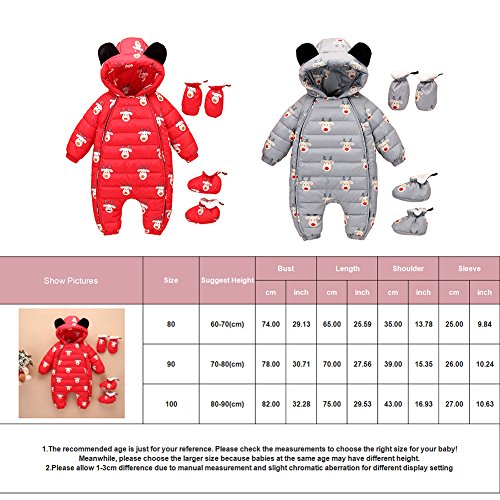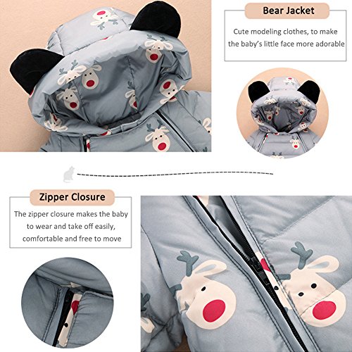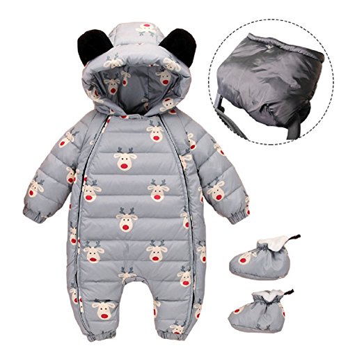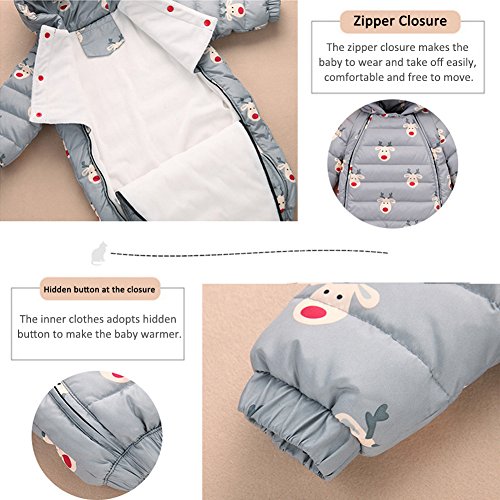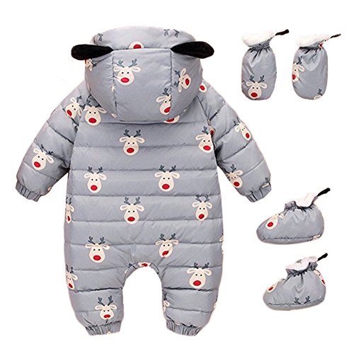 新生児 ロンパース カバーオール ダウンコート ベビー服 赤ちゃん服 冬 暖かい 厚手 防寒 男女兼用 (グレー, 80)