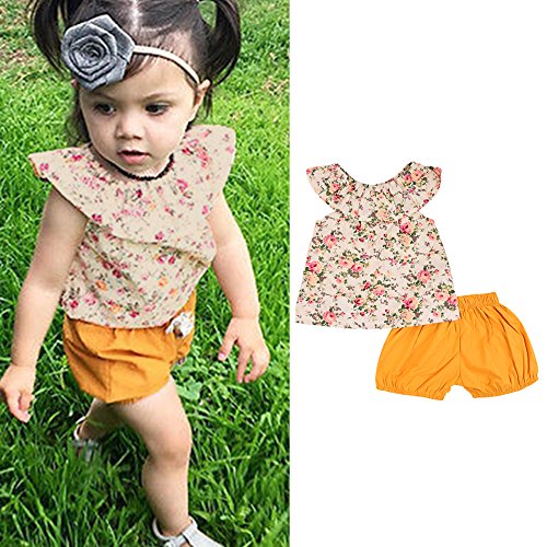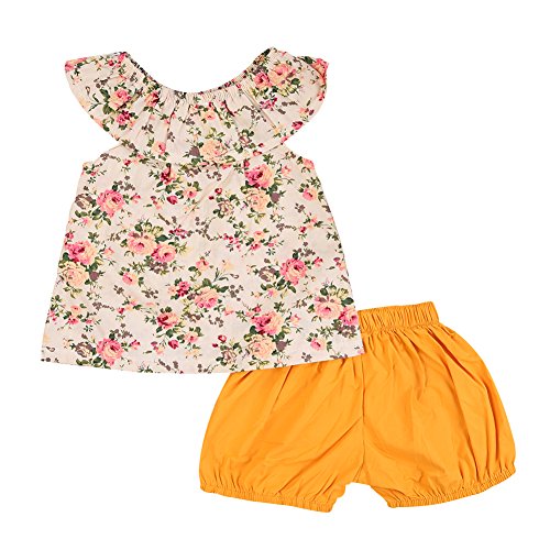 PER ベビー服 上下 セット 2点セット tシャツ&ショットパンツ 蝶結び 花柄 可愛い 女の子 子供服 夏 綿 (M)