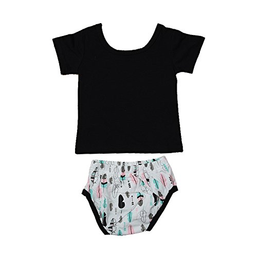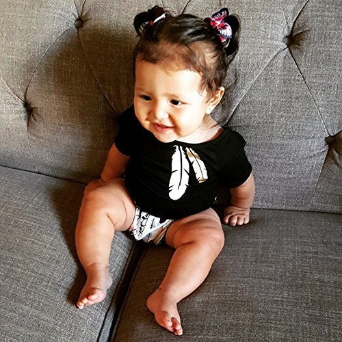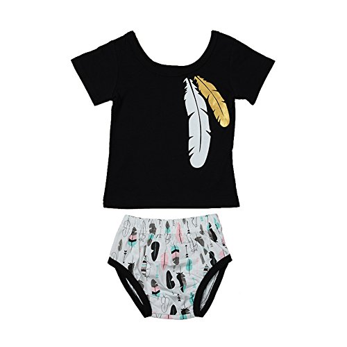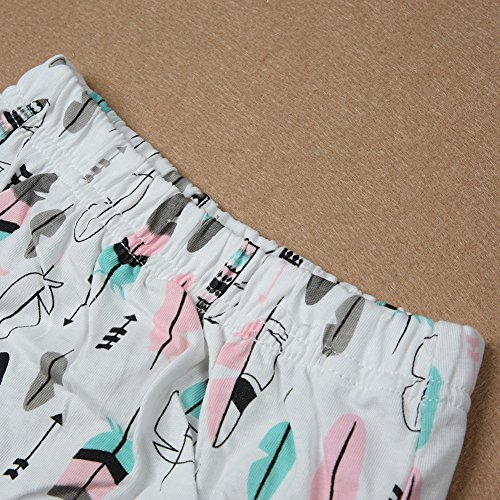 PER Tシャツ ショートパンツ ベビー服 二点 セット 女の子 夏服 可愛い 綿 羽プリント 通気性 (80)
