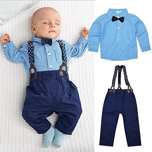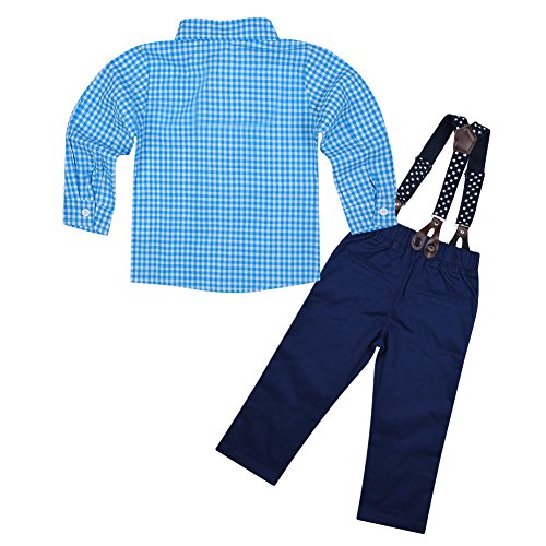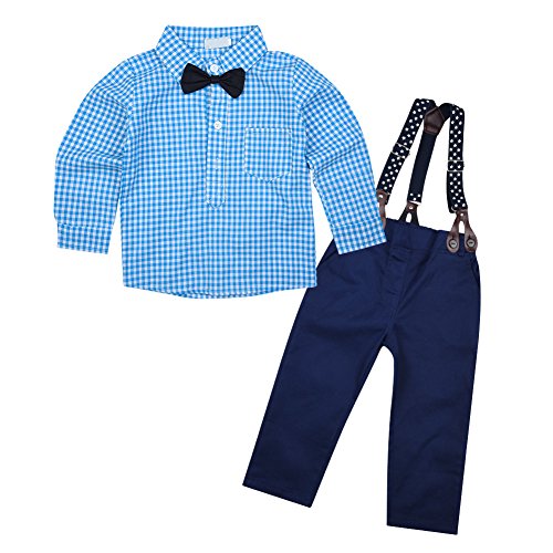 ボーイズ服 長袖 秋物 シャツ ズボン ベビー服 二点セット つなぎ ロングパンツ 紳士 フォーマル 男の子 キッズ カッコイイ (90)