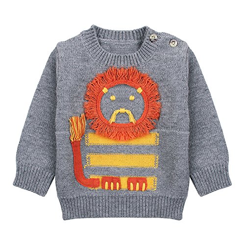 ベビー セーター 赤ちゃん服 子供用 ニットセーター トップス カジュアル 女の子 男の子 秋冬 長袖 カートン 可愛い 暖かい 保温 (100, グレー)